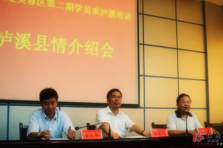 泸溪县委常委、组织部长吕永辉首先代表泸溪县委、县政府对第二批芙蓉区泸溪干部教育锻炼班学员表示了欢迎,并简要地介绍了县情,希望学员们多走动、多记录、多思考和多交流。会上,泸溪县农办、经信局的领导分别就泸溪的农业和工业发展情况进行了简要的介绍。