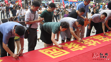 领导积极参与“情系蓝结家园 共建和谐芙蓉”签名活动