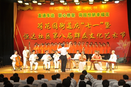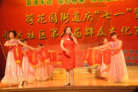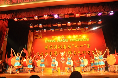 表彰大会结束后,领导们兴致勃勃地与大家一起观看了恒达社区第八届群众文化艺术节的精彩节目。社区居民大合唱《浏阳河》、《共产党人好比种子》一上场就赢得了满堂喝彩;社区群众表演的舞蹈《太阳鼓》,用优美的舞姿跳出了土家姑娘火一般的热情;一曲《好日子》唱出了一派节日的欢腾;社区居民表演的京剧《中国》展现了民间艺人的风采,社区干部与居民合唱的《千万个雷锋在芙蓉》,用欢快的歌声唱出了她们的活力。