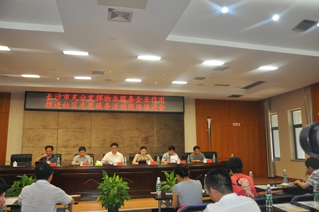 芙蓉新闻网7月13日讯(通讯员 吴湘媛)7月13日上午,长沙市“充分发挥物业企业作用 推进社区志愿服务活动”现场推进会在区检察院五楼会议室举行。长沙市委宣传部副部长、市文明办主任杨长江,市住建委副主任杨新武、市城管局副局长胡刚、市文明办副主任丁德喜,芙蓉区委常委、宣传部部长伍艳飞,区政府副调研员李跃进及其他各区、街道代表约100人出席会议。会议由丁德喜副主任主持。