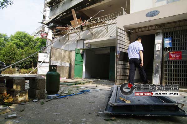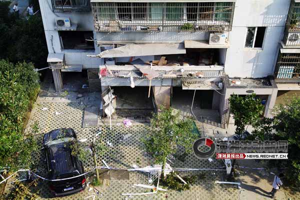(9月7日早上6点半,长沙农科院丰泽小区发生爆炸起火,两三栋居民楼遭到破坏。图/潇湘晨报滚动新闻实习生 杨旭)
