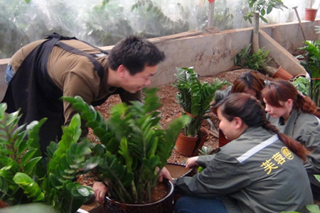 女园艺师们还向前来参观的学生、市民介绍植物盆栽的搭配法则,虽是一个个小小的盆栽,不同的植物搭配都很有讲究,属性不同的植物不能搭配在一起,植物与盆具更应兼具形态、颜色协调;而居室装点最好选用盆栽植物或者鲜花这些自然的有生命的东西,既不会产生污染,还可以清新空气,吸收有毒气体。很多女园艺师们自豪的说,身为职业女性,只有不断培养自身高雅的品位、健康的情趣,在干好工作的同时,才能经营好家庭,经营好人生,让爱情永久保鲜,让智慧时刻闪光,创意盆栽和插花是女性情趣培养最好不过的选择。盆栽间的女园艺师们就仿佛花丛中翩翩起舞的蝴蝶,忙碌并快乐着,笑靥如花。