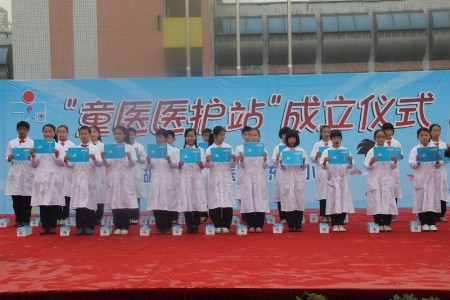 4月26日,湖南省儿童医院专家来到长沙市东郡小学,在这里举行急救知识普及演练,让更多孩子从小掌握急救技能。医院和学校还联合建立全市首个“童医医护站”,就少年儿童现场教学开展合作项目,培养一批校园“小医生”。