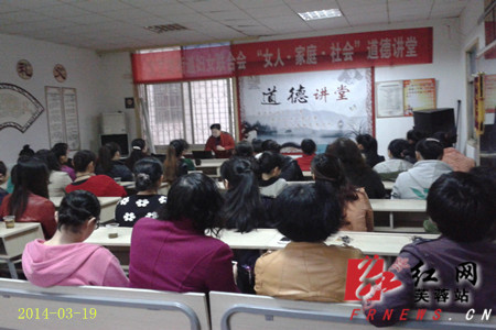 红网芙蓉站3月19日讯(通讯员 谭佳林)为进一步提升社区公民道德素质,大力弘扬“关爱妇女、关爱社会”的良好道德风尚。3月19日上午,文艺路街道妇女联合会在东广济桥社区举办了主题为“女人·家庭·社会”道德讲堂活动,来自7个社区的妇女代表、志愿者代表共计60余人参加了此次活动。
