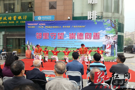 本次活动以“邻里守望,崇德向善”为主题,以歌舞、魔术等形式为观众们带去一道道丰盛的文化大餐。恢弘大气的原创歌舞《新时代赞歌》、动感热辣的现代拉丁舞、喜庆欢快的秧歌舞《家在东北》、充满浓郁民族风情的歌舞《挑担山歌上北京》等节目轮番登场,演员们精湛的舞技、优美的歌声,把现场气氛推向一个又一个高潮。其中,由长沙市总工会选送的魔术和湖南天艺舞团的爵士舞《venus》更为整台活动增添了青春时尚的气息。