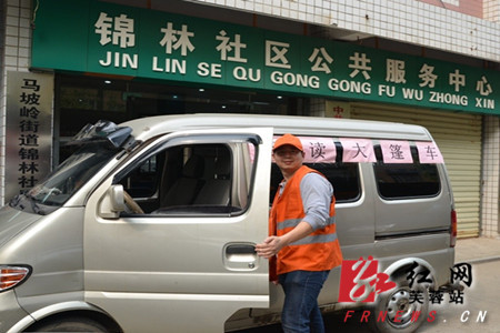 红网芙蓉站4月17日讯(通讯员 周盼)4月16日下午三时许,一辆满载幼儿绘本的“大篷车”从马坡岭街道锦林社区出发开向东岸锦城幼儿园。这是芙蓉区马坡岭街道锦林社区幸福家园先锋工作室将学校、社会、家庭有机结合,形成“三位一体”青少年教育模式的体验之一。