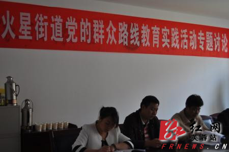 红网芙蓉站 4月28日讯 (通讯员 赵聪04月28日上午,火星街道按照年度党的群众路线教育实践活动安排,结合教育实践活动实施方案,在街道四楼会议室组织群体党员干部召开“入党为什么,为党干什么”党的群众路线教育实践活动专题讨论会。