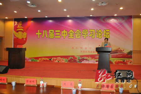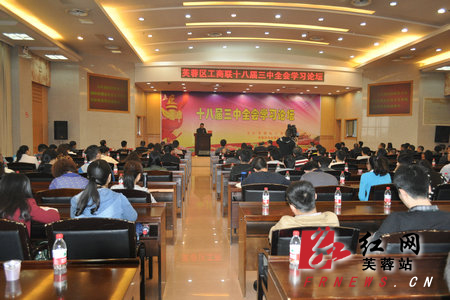 红网芙蓉站4月30日讯(通讯员 罗伊凡)4月29日下午,芙蓉区工商联在214会议室隆重举办十八大三中全会学习论坛。市政协副主席、市工商联主席彭继球,市委统战部副部长、市工商联党组书记饶福明受邀出席,区委常委、区委组织部长、统战部部长周虔,区政协副主席、工商联主席洪曙光陪同出席,区工商联会长、副会长及部分兼职副会长、分会会长以及区工商联执常委、会员、青年创业者代表等共计160余人参加本次论坛学习。