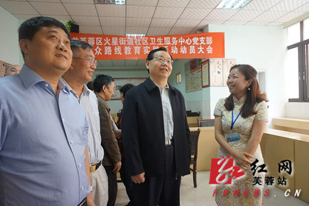 红网芙蓉站 5月13日讯 (通讯员 赵超斌)5月13日上午,致公党中央常务副主席蒋作君一行在致公党省委主委胡旭晟,省卫生厅副厅长黄顺玲等的陪同下,到火星街道社区卫生服务中心就社区卫生服务在分级诊疗等有关情况进行考察调研。长沙市卫生局局长郭塨,芙蓉区委常委、组织部长、统战部长周虔等分别陪同。