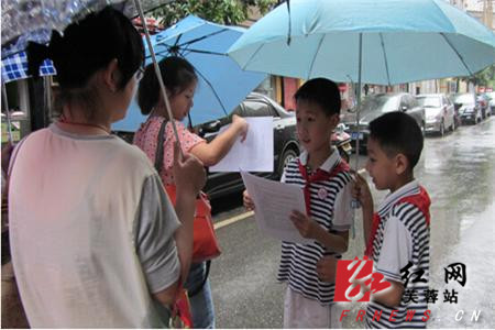 红网芙蓉站5月27日讯(通讯员 蒋蓉 朱世超)5月26日下午,五里牌街道燕山小学的30多名少先队员走上街头,向来往路人们宣传科学知识,呼吁市民共同建设节约型社会。