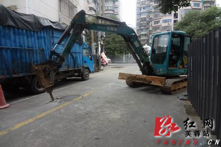 花鼓戏剧院:市政工人在紧张施工