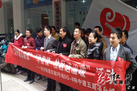 红网芙蓉站3月4日讯(通讯员 吴美云 文阳)为了进一步弘扬雷锋精神,推进街道志愿活动深入开展,在全街营造人人愿做雷锋、人人都是雷锋的良好氛围,上午10点,五里牌街道联合中建五局地铁三号城建施工单位在辖区开展“学雷锋·社区送温暖”活动。