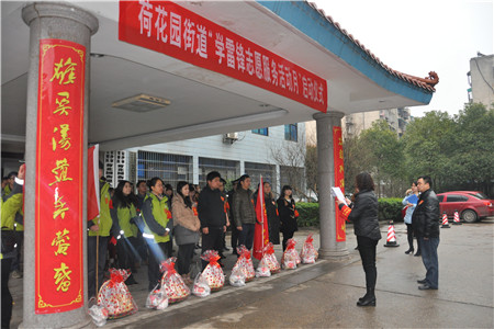 红网芙蓉站3月5日讯(通讯员 李玲)3月5日,寒风凛冽、细雨不断,今天是全国第52个“学雷锋纪念日”,是第十六届“中国青年志愿者服务日”,也是中华民族的传统节日—元宵节。为大力弘扬和传承雷锋精神,积极培育和践行社会主义核心价值观,上午,荷花园街道团委、工会联合上海城建市政工程(集团)有限公司举办了以“弘扬雷锋精神 争做时代先锋”为主题的学雷锋志愿服务活动月启动仪式。仪式由办事处副主任黄继文主持,街道工委副书记张军出席并作重要讲话,共计50余名党团员志愿者参与。