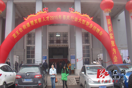 红网芙蓉站3月10日讯(通讯员 杨友莲 言芳)3月10日上午,定王台街道暨芙蓉人才2015年春风行动大型联合招聘会在湖南省展览馆如期举行,区人社局党组书记卢滔、副局长李小萍、就业服务中心主任邓捷、定王台街道办事处副主任吴齐成等领导莅临现场指导。