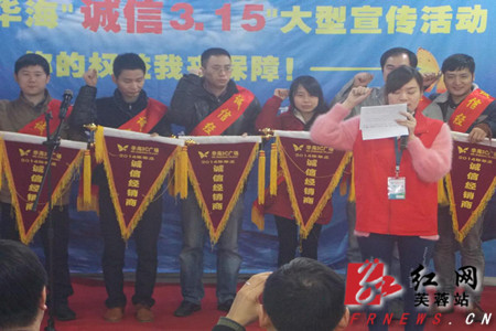 红网芙蓉站3月16日讯 (通讯员 王惠)3月15日,是一年一度“国际消费者权益日”,也是广大消费者维护自己合法权益的节日。为了迎接国际消费者权益日,朝阳街道办事处携手长沙华海3C广场党支部在3月15日上午,举办“诚信3.15-你的权益 我来保障”活动。本次活动由长沙市芙蓉区文明办、朝阳街道办事处、朝阳社区主办,长沙华海3C广场承办。