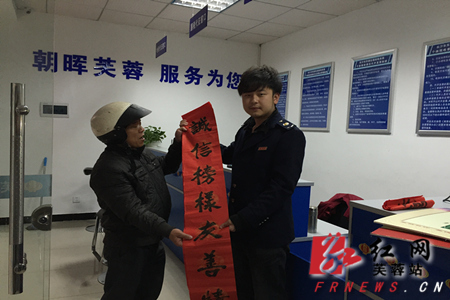 在开展“纳税送对联”的活动中,街道个体税收委托代征点工作人员在热心服务纳税人的同时,向主动上门的纳税人赠送包含核心价值观内容的对联,让他们在潜移默化中了解社会主义核心价值观的重要意义,让诚信成为一种风尚、法治成为一种习惯。