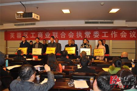 区工商联副主席、湖南湘贵实业有限公司董事长王静宣读了《2014年度商会工作情况报告》,并公布2014年度获奖的先进商会、优秀商会和优秀秘书长,并提出希望获得荣誉的单位,珍惜成果,戒骄戒躁,争取在新的一年取得更大的成绩。接着,与会领导为荣获2014年度先进商会、优秀商会和优秀秘书长等授牌。