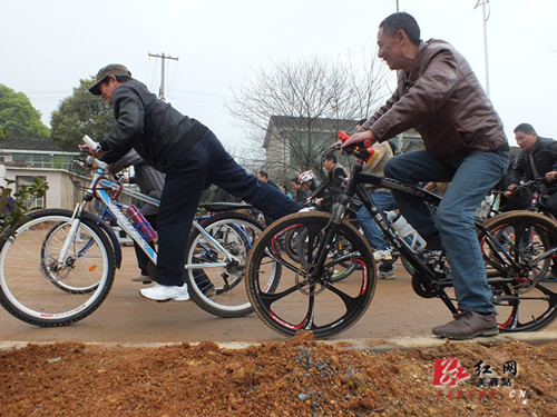 红网芙蓉站3月27日讯(通讯员 郭佳 黎宏)“我特地买的新自行车来参加比赛,今天要好好的看看滨河路。”东湖村二组王先生的新自行车在参赛队伍中非常显眼。3月27日上午,来自东湖街道东湖村的100余村民饱含激情,摩拳擦掌正在准备参加村里组织的自行车骑行比赛。参加比赛的有20多岁的年轻人,也有65岁以上的老年人,他们全都是世世代代居住在浏阳河边的村民,随着号令员鸣枪发令,参赛选手们开始骑上车沿浏阳河滨河大道向终点出发了。