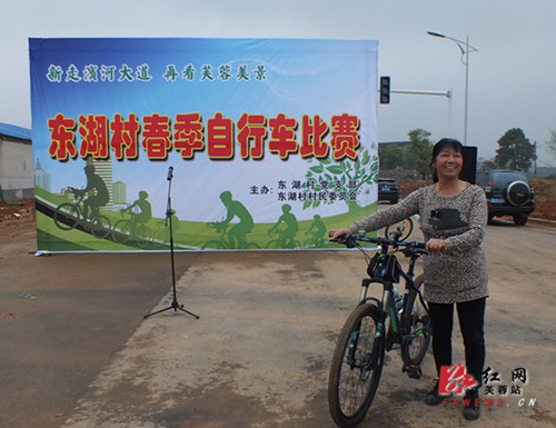 62岁的村民刘利君一直用自己的言行倡导着绿色环保行动。活动当天,她和平均年龄超过50岁的健身队友们也来一显身手,积极参与绿色环保行动。她说,通过比赛,可以倡议广大居民群众都参加自行车活动,“自行车骑行是绿色骑行,低碳生活,对环保、对东湖、对浏阳河的碧水蓝天都有好处。”