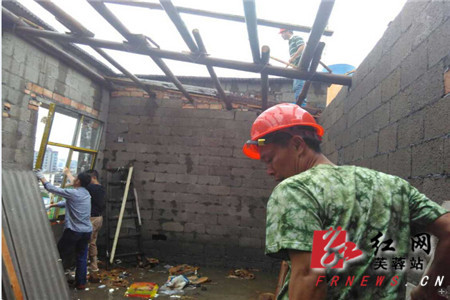 红网芙蓉站5月8日讯(通讯员 张军)5月7日下午,接群众举报,东二环好食上酒店6楼楼顶正在新建违章建筑,得知此情况,荷花园街道城管办立即与当事人沟通协商拆除事宜,并组织人员到现场勘查。5月8日上午强降雨,为避免违章建筑带来安全隐患,荷花园街道城管办、城管执法中队、城管特勤人员、城管协管员等共20余人到达现场对违章建筑进行了依法拆除,本次拆除行动历时三个小时多小时 ,共拆除违章建筑80余平方。“拆了好啊,每天在这里看到都提心吊胆的!”路过的附近居民无不拍手称快!