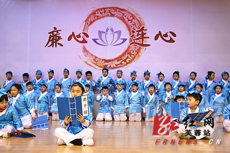 “出淤泥而不染,濯清涟而不妖,中通外直,不蔓不枝……”,伴随着优美的配乐诗朗诵与行云流水般的独舞表演,现场笼罩在一片“莲”文化的浓厚氛围中,为后续整个活动奠定了清明廉洁的基调。活动接下来的快板说廉节目细数了中国廉政文化的古时今日,邀请到三代同堂的书法爱好之家现场书写廉政,尤其是芙蓉区育才三小的50位小朋友集体朗诵《弟子规》节目,将现场气氛推向高潮。这一个个精彩纷呈的节目不但让大家深切体会到中国廉政文化的源远流长和深厚积淀,也充分展现了芙蓉区在未成年人家风家训传承上所做出的不懈努力。