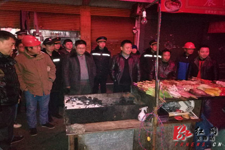 红网芙蓉站 1月25日讯 (通讯员 张坚)为深入推进城市环境综合治理工作,优化城市形象,提升城市竞争力,更好地服务全区经济社会发展,1月22日晚, 芙蓉区环保局局长余新春率领区环保局工作人员连同火星街道城管执法中队、派出所、协管队伍近百人,对辖区内的流动摊担、露天烧烤进行了一次专项整治行动。