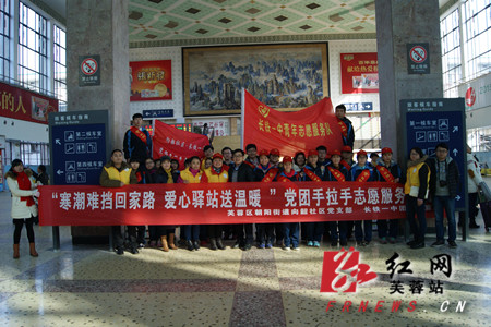 红网芙蓉站1月25日讯 (通讯员 叶圆)1月23日长沙火车站候车大厅,火红的党旗团旗迎风飘扬,40名团员、20名余名党员身着统一的志愿者服装参加了朝阳街道“寒潮难挡回家路 爱心驿站送温暖”为主题的志愿服务活动。活动主要为春运旅客特别是老幼病残孕等重点旅客群体,提供引导咨询、秩序维护、重点帮扶、便民利民、应急救援等五个方面服务,共同营造平安出行、温暖同行的良好秩序和氛围。