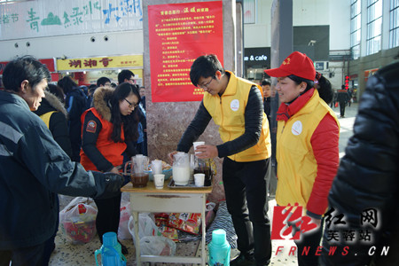 活动中,为了让旅客们接受志愿者们的服务,党旗团旗飘扬亮明身份,横幅打出志愿服务内容,便于来往旅客辨识,还为旅客准备好了牛奶、姜茶、板篮根、饼干等食品,党团志愿者们热情洋溢着,为赶着回家过年的旅客送上一杯热茶,送上几片饼干,为小朋友们送上可爱的暖手袋,帮旅客们搬行李、指引他们文明候车,在寒冷的冬天里给过往的旅客送去“温暖”。一位大爷和大妈俩人行李较多,志愿者们上前帮忙,大妈连声感谢。志愿者们的行为,受到了旅客们的一致好评,也为新春增添一道靓丽的风景。