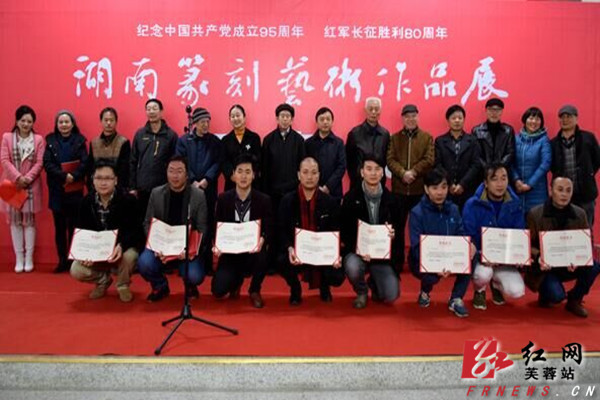 红网芙蓉站 11月27日讯 (通讯员 王惠)11月26日,由长沙市委宣传部、长沙市文联、市文明办、芙蓉区文明委主办,朝阳街道协办的纪念中国共产党成立九十五周年、红军长征胜利八十周年主题篆刻艺术展在湖南省图书馆正式开幕。湖南省文史研究馆、省书协、长沙市政府、市文联、市文明办等有关领导出席活动。