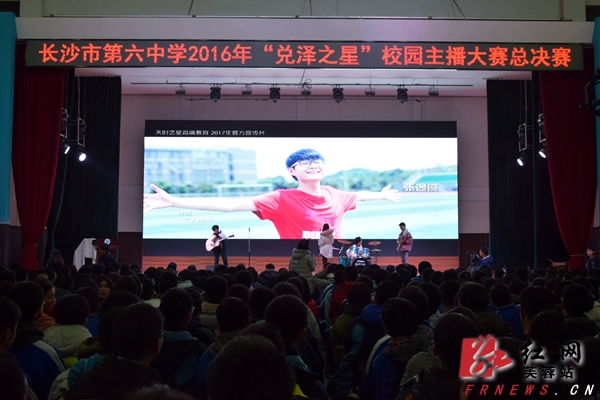 红网芙蓉站 11月25日讯(通讯员 陈薇)11月25日下午,由长沙市文明办、芙蓉区文明委主办,湘湖管理局、跃进湖社区联合长沙市第六中学举办的2016年“兑泽之星——青春语你同行”青少年主播大赛活动在学校礼堂盛大举行,广大青年学子闪亮变身,在舞台上尽情释放自己在语言组织、才艺技能、知识广度方面的天赋,精彩绝伦的表演引爆现场。