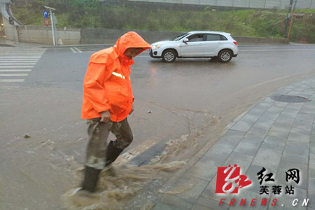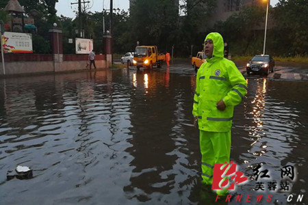 市政局从17时就要求所有科室人员上路巡查城区各街道,对于积水较为严重的区域,第一时间组织排水工作。暴雨致使芙蓉区多个路段出现积水情况,较为严重的为车站路火车站广场、亚大路雄天路口、万家丽路东郡路口。市政人员通过疏通雨水井、下水道等措施加快排水,确保城区安全度汛。