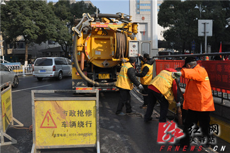 在党组书记、局长戴建林的带领下,市政局出动人员110人、工程车辆20台,对五一大道、芙蓉路、韶山路、八一路、古稻田、识字岭、九道湾社区等主次干道和重点路段进行大清洗,累计疏通各类市政井72座,清理化粪池8座,疏浚744米,外运粪渣6车;更换人行道板28平方米;修复路面230平方米,外运垃圾2立方米。