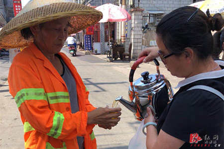 红网时刻长沙7月10日讯(通讯员 郭卫)进入小暑后长沙又开始热浪逼人,环卫工人仍然每天坚守在自己的岗位上,为广大市民营造干净靓丽的城市环境。为预防一线环卫工人高温中暑,环卫局各部门煮好绿豆汁、凉茶送到一直奋斗在大街小巷的一线清扫员和驾驶员手中。