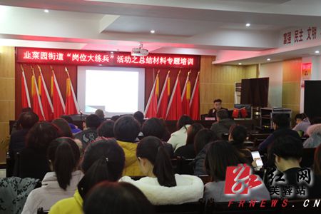 红网时刻长沙12月21日讯(通讯员 李苑芳)在长沙市芙蓉区韭菜园街道三楼会议室内,老师在台上讲课,“在职”学生在座位上认真地做着笔记。这样的场景对于韭菜园街道的干部职工来说再寻常不过了。12月21日,为深入贯彻落实“开展岗位大练兵 提升三服务质量”活动要求,韭菜园街道举行主题为“提升内在文采 彰显街域特色”的材料写作专题培训会,街道机关及社区工作人员近30人参加。