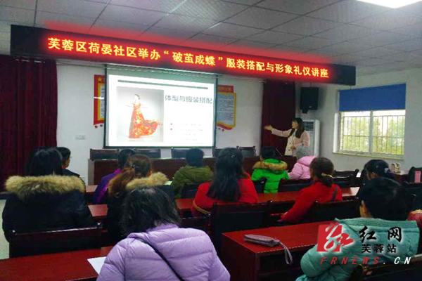 红网时刻长沙12月24日讯(通讯员 张伟)魅力女人应该内外兼修......12月24日上午,长沙市芙蓉区荷花园街道荷晏社区邀请培训机构服装造型师董老师为社区居民开展“破茧成蝶”服装搭配与形象礼仪讲座,帮助居民提升自我形象与气质。