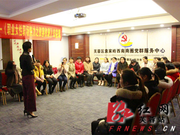 12月26日下午,由长沙市芙蓉区总工会主办,文艺路街道党工委承办,乔庄社区党委协办的《职业女性职场魅力之仪容仪表》公益课堂在文艺路街道袁家岭西南商圈党群服务中心举行,活动邀请国家高级整体形象管理师、国家礼仪高级培训师彩蝶老师,为商圈企业的30多位职场白领送上了一堂关于打造优雅仪态、提升职场形象的精彩讲座。