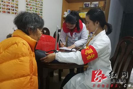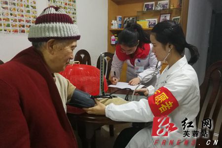 红网时刻长沙1月2日讯(通讯员 廖海梅)2018年12月30日,一场大雪,整个星城银装素裹,气温也随之骤降,但家住长沙市芙蓉区韭菜园街道汤家岭社区的独居老人刘绪森的心里却暖暖的。原来,社区志愿者得知刘嗲嗲的降压药就快吃完了,大雪天出门不便,今天一大早就带着社区医生上门送药,并为他做身体检查。