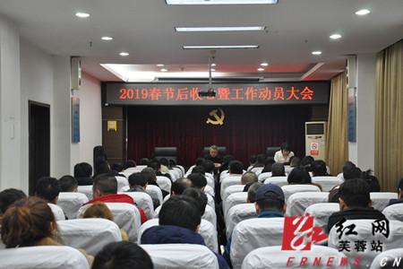红网时刻长沙2月12日(通讯员 周琼)春节假期已经结束,为迅速调整精神状态、恢复工作秩序,2月12日上午,长沙市芙蓉区市政局在一楼会议室组织全体干部职工召开了2019年春节后收心暨工作动员大会。