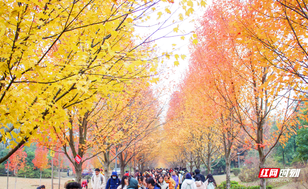 图:2020年11月,东湖街道联合湖南农业大学举办第三届东湖红枫节,游人如织。