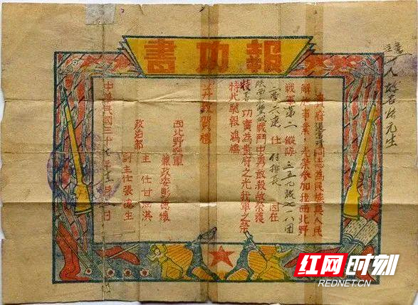 一份由彭德怀、甘泗淇、张德生联名签署的报功书,张富清荣获特等功。