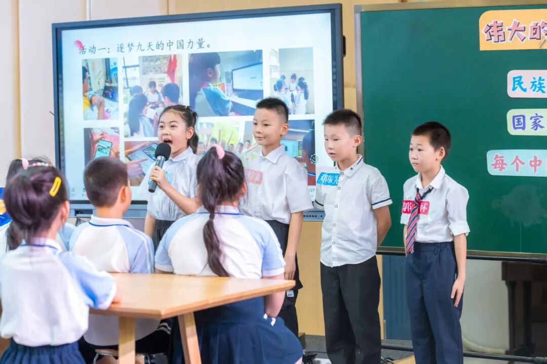 《以少年之志,燃科技强国之光》一课采用了“党员教师+两位小助教”的双主体模式,课堂从学生对小米音箱等生活科技带来的便利性感知出发,逐步扩展至国家重大科技成就,如“中国天眼”“嫦娥”揽月、“北斗”系统、“蛟龙”号等,通过故事化的方式深化学生认知,运用视频、演示、数字人等多种形式,增强代入感,激发了学生的探索欲。